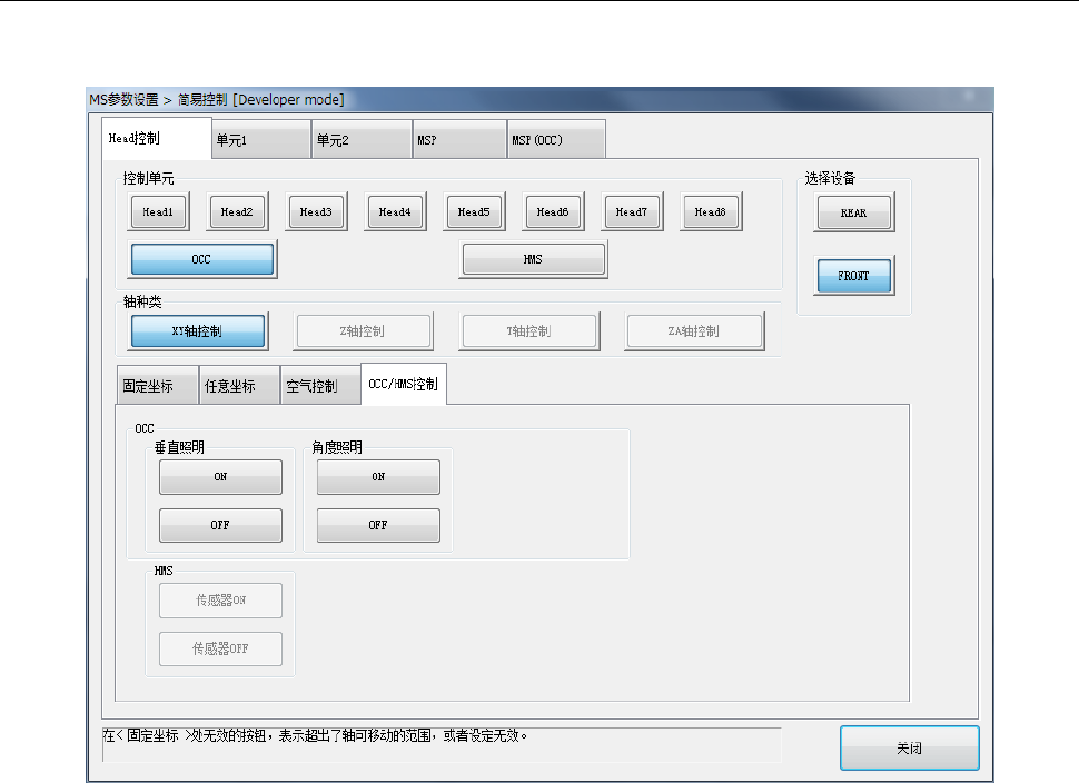 [ 控制单元 ]指定 OCC 时,可进行 OCC 控制;指定 HMS 时可进行 HMS 传感器控制。
