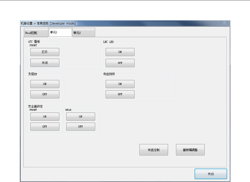 可对ATC(滑板)、支撑台、安全盖锁定、LNC LED、传送挡块、传送、AWC进行控制。