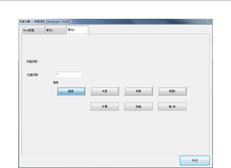 选择[托盘控制]的[速度],按下[扩展]按钮,可按选择的速度拉出托盘。