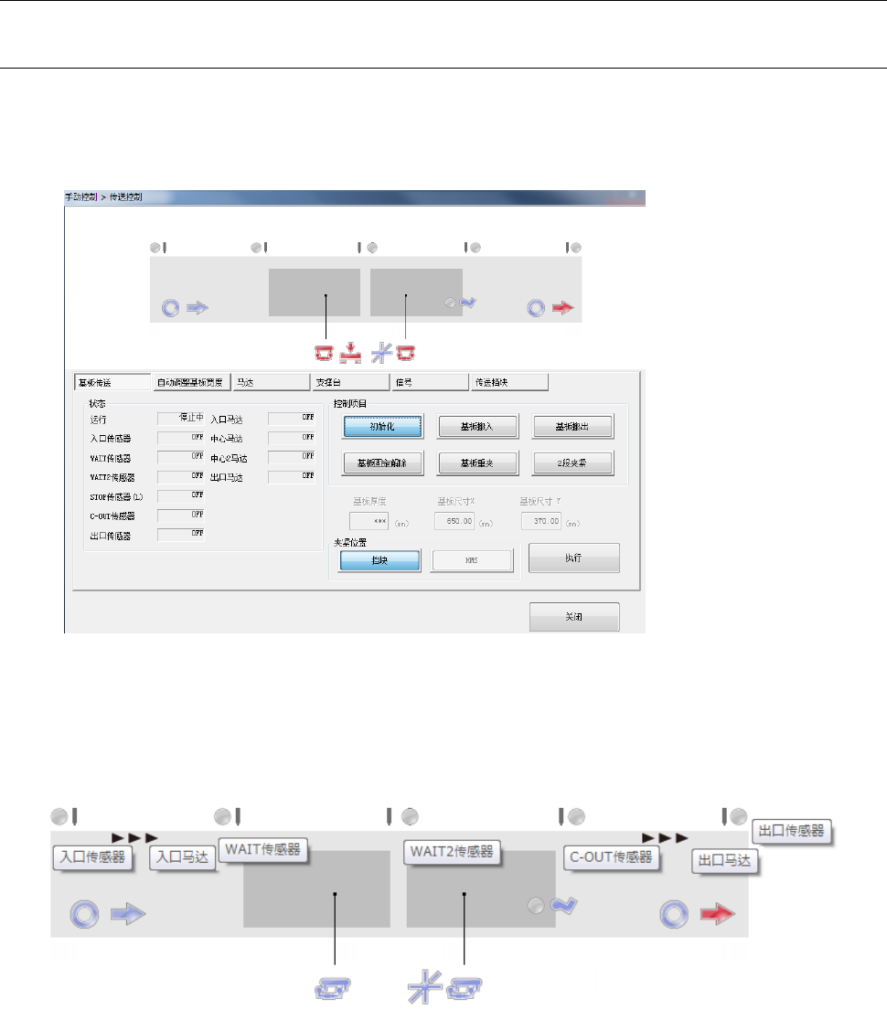 在画面上部显示各传送传感器·传送马达的状态。