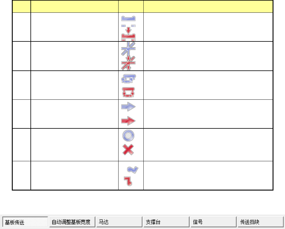 第 2 部 功能详解篇 第 9 章 手动控制 9- 16 用画面中央的 按下式 按钮 ,可选择 控制 对象。 后面将详细说明 。 参见 9-4-1-1 控制对象:基板 传送 以后 的章节 。 No. 显示项目 显示图 显示内容 1 支撑台 挡块 支撑台挡 块处于 OFF 状态。 支撑台挡 块处于 ON 状态。 2 支撑台 原点传感器 支撑台 原点传感器处于 OFF 状态。 支撑台 原点传感器处于 ON 状态。 3 IN 缓冲选择 器 ・…