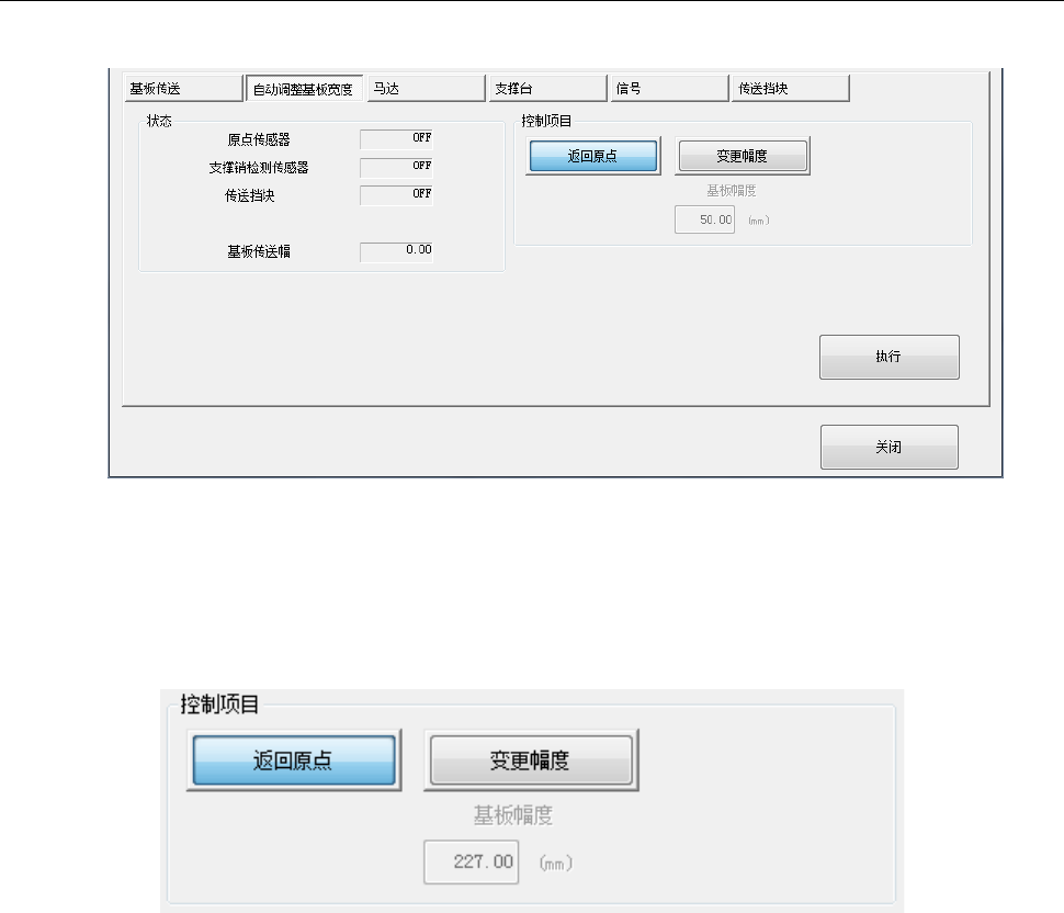 按照“基板幅度”编辑框中输入的值,变更搬送宽度。