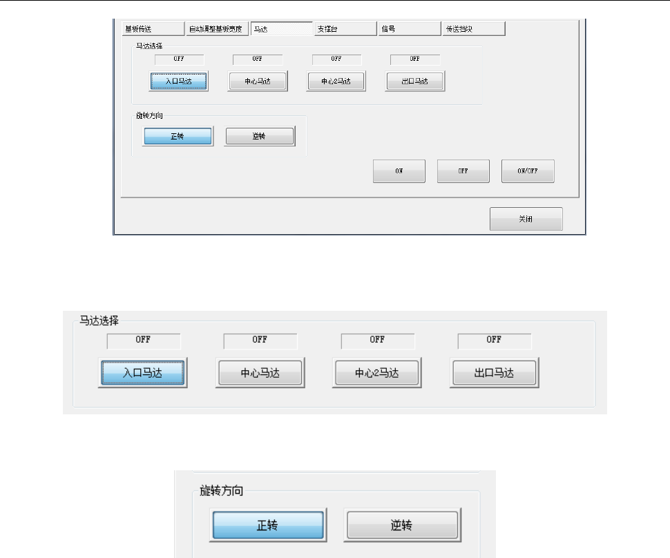按[ON]按钮,[OFF]按钮,[ON/OFF]按钮,对选择的马达进行 ON/OFF 控制。