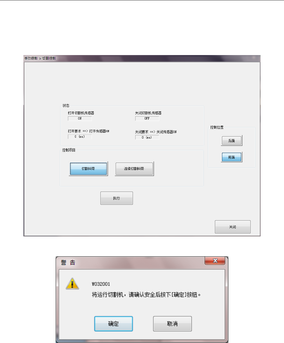 带],或[连续切割料带])动作,按下[执行]按钮。按下[执行]按钮后,会显示对话框,按下[执行]