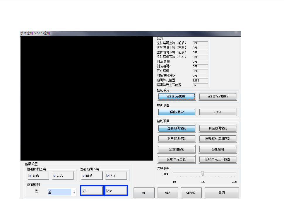 控制透射照明、侧面照明、下方照明、及同轴照射照明的 ON/OFF。
