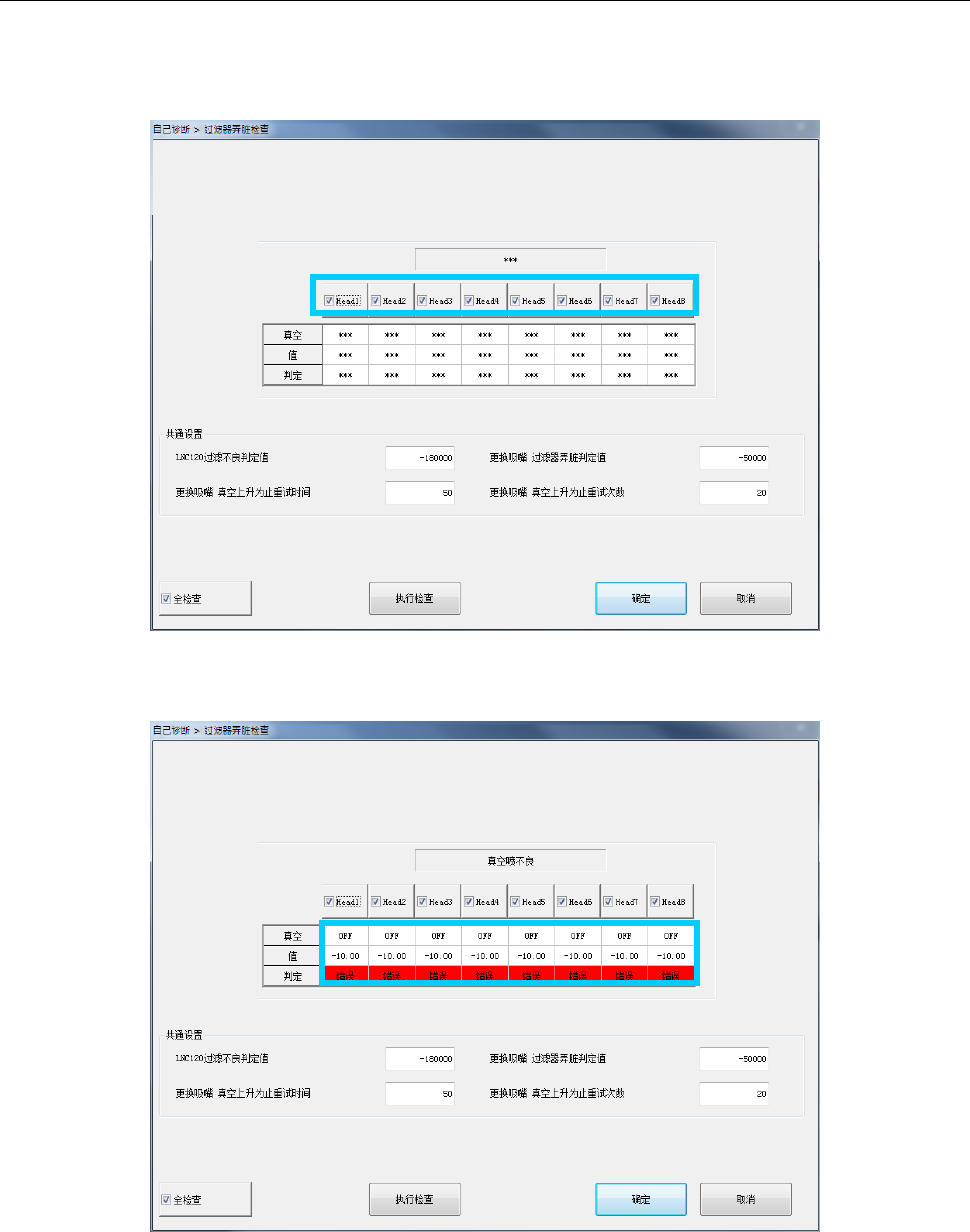 此外,取得的真空值大于LNC120 滤器不良判定值+吸嘴更换 过滤器不良判定阈值时,