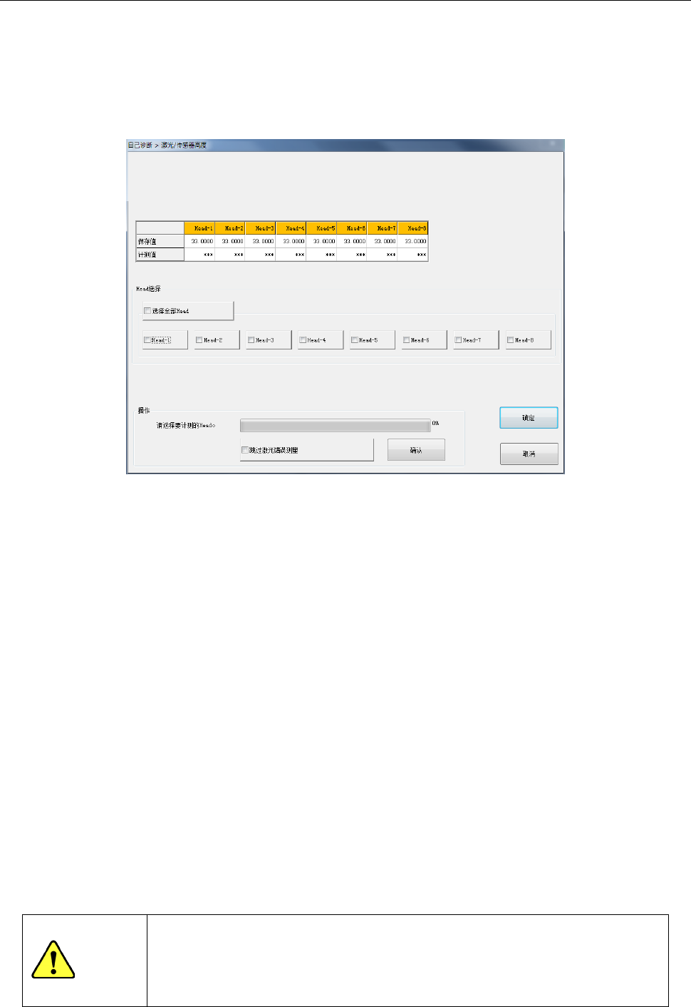 如果要再次测定发生错误的 Head,请在测定完成后(进度条变为 100%后),再次选择
