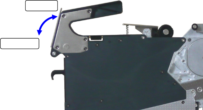 第 2 部 功能详解篇 第 12 章 选项组件 12 -6 8 ) 操作 供料器的 锁紧释放杆, 在导向销 F 顶住定位板的 位置 的状态下将供料 器 紧固在带卷 安装 台上。 紧固 解除紧固