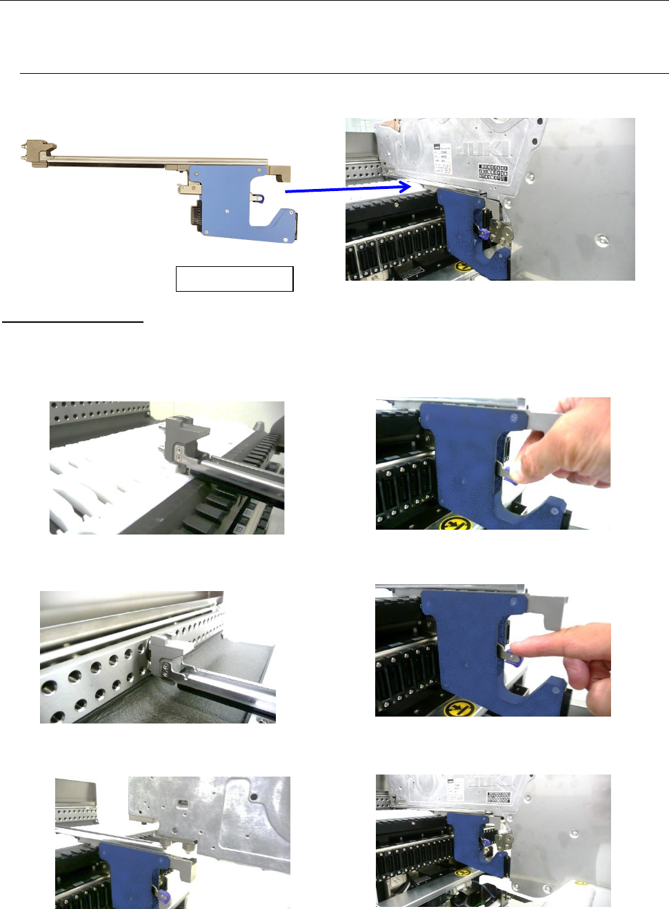 7) 确认滑动轨道的前端已确实插入工作底座,插入供料器。