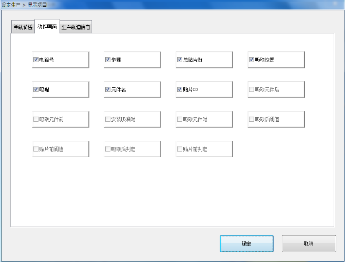 可在「单轨传送选项卡中设置单轨生产中生产状态画面项目的显示/隐藏