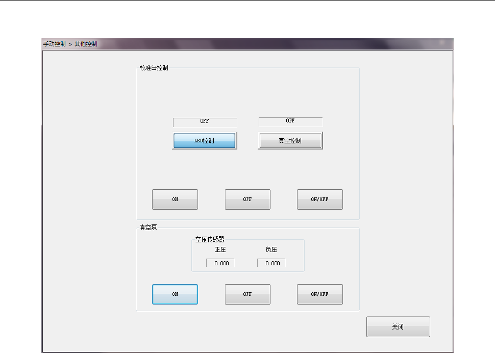 用单选按钮选择控制项目,按「校准台」旁的[ON]按钮、[OFF]按钮、[ON/OFF]按钮进行控制。