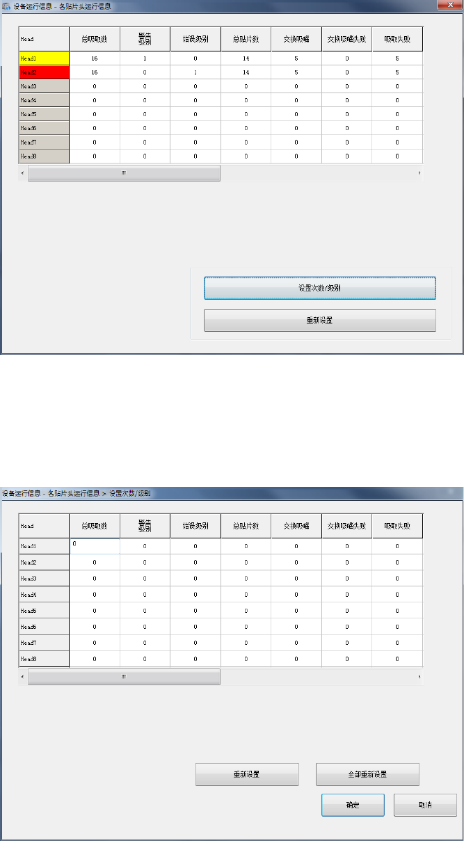 按下[设置次数/级别]按钮,或从菜单中选择[设定]-[设定-各贴片头运行信息],