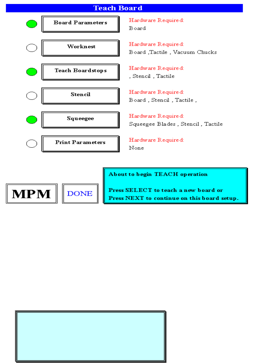 Press SELECT to teach a new board or(按 SELECT,設定新基板)