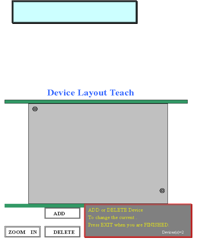 44 3. Device Layout 做 2D( 錫膏覆蓋率 ) 檢查時 , 所要檢查零件 About to begin Device Layout TEACH. ( 即將開始做 2D 檢查的零件之設定 ) Pr ess NEXT to Continue, or EXIT to Quit. ( 按 NEXT 繼續 , 按 EXIT 離開 ) 按 NEXT 之後 , 出現下列視窗畫面 ADD or DELETE Device ( 新增或…