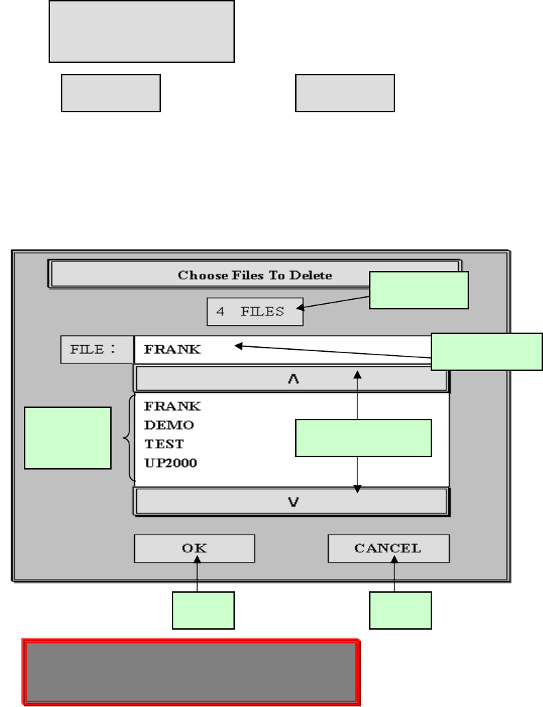 59 2. Save File 儲存入 檔案 當你點取 File 功能表上的 Save File 出現如下畫面。 畫面說明 FRANK: 一個程式名稱 BACKSP: 倒退消除鍵 ENTER: 輸入確認按鈕 0~9 數字鍵、 26 個英文字母鍵、 1 個空白鍵、 1 個『 - 』符號鍵 : 程式 命名用 Enter file name. ( 輸入檔案名稱 ) Pr ess <ENTER> when done. ( 按 ENT…