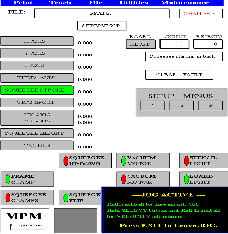 按 NEXT 之後,有一指標會往上跑到 JOG 區的 SQUEEGEE STROKE