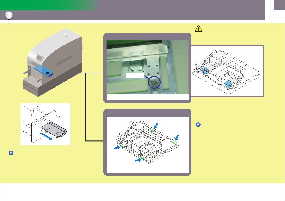 74 每 12,000 小时 (每 1 年零 6 个月) 废料带处理单元 为导轨加油 为导轨加油 注 意 注 意 废料带处理单元的切刀非常危险。 在搬运或清扫时请注意手指不要接近。 需要预先从机器上取下废料带处理单元。 详细内容请参照《 NXTIII 机械手册》 「 8. 部件的更换」-「废料带处理单元的更换」。 导轨 润滑油嘴 注入 Daphne Eponex No.2 。 基座板 加油量如下所示。 请注入适量润滑油。 加油位置沾染污…