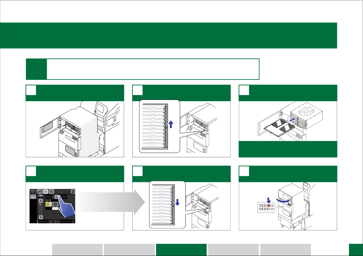 请打开门。 1 从该料槽上拔出空料盘,安装新料盘。 3 请提起托架挡块。 2 补充元件。 补充元件。 (来自料尽料盘箱的补充模式 - 验证 (来自料尽料盘箱的补充模式 - 验证 OFF OFF ) STEP 2 机器概要 生产准备 生 产 换 线 示意图 23 请点击安装按钮。 4 请关门并按下 COMPLETE 按钮。 6 请放下托架挡块。 5 需要指定吸取点时,点击画面内的吸取点 标记(1.1)后,进入设定画面。 有上下 2 扇门,…