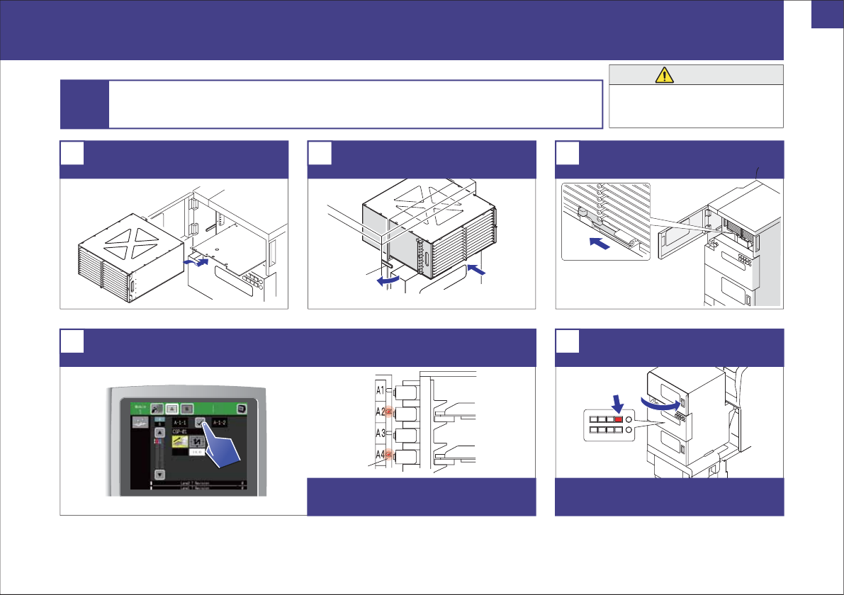 控制杆 LED 36 在料盘单元 在料盘单元 -L T/L TC -L T/L TC 中安装料盘。 中安装料盘。 (料盘箱成批更换) (料盘箱成批更换) STEP 2 请将料盘箱放在板上。 6 请滑动料盘箱挡块。 8 请扳下控制杆,插入料盘箱。 7 请确认LED闪烁料槽的料盘元件后,点击安装按钮。 9 关闭门,按下 COMPLETE 按钮。 10 更换另一个料盘箱时,请打开另一扇门,重 复至此的作业。 对安装了料盘的所有料槽,重复 9 …