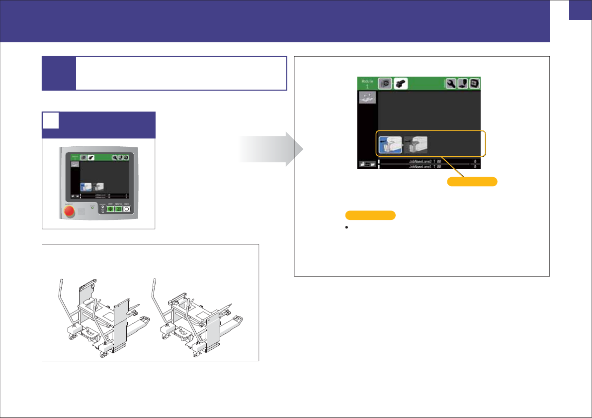 机器概要 生产准备 生 产 换 线 示意图 47 从 从 机器 机器 卸下料站托架 卸下料站托架 。 STEP 2 有关供料器成批更换的说明请参照 「 NXT III/NXT IIIc 系统手册」 的 「4. 生产准备」 。 在搭载料盘单元的模组上开始显示料盘单元取出向导。 请根据向导取出料盘单元。 握紧握杆缓慢将PCU-2(c)退后。 5 请将PCU-2(c)先端的滚轮缓慢插入到PCU导槽中。 请将PCU-2(c)安装到模组上。 12…