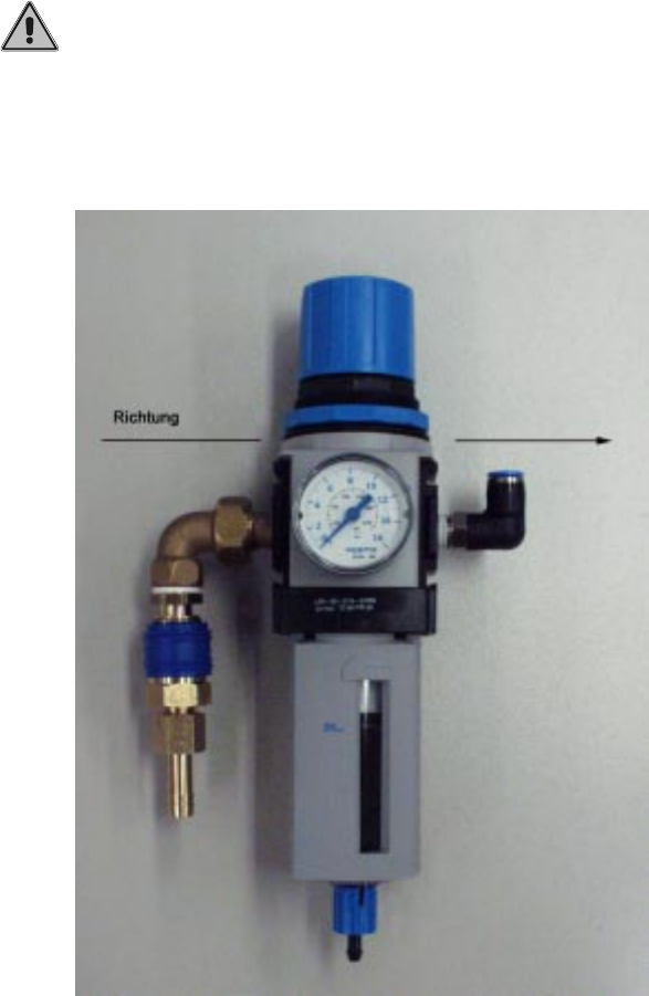 Achten Sie auf die richtige Durchflussrichtung durch die Druckluftwartungseinheit!