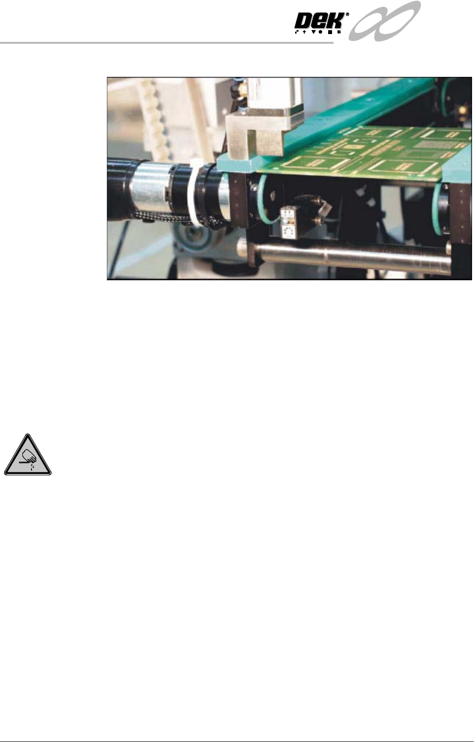 BOARD CLAMPS. EXTREME CARE MUST BE EXERCISED WHEN WORKING IN