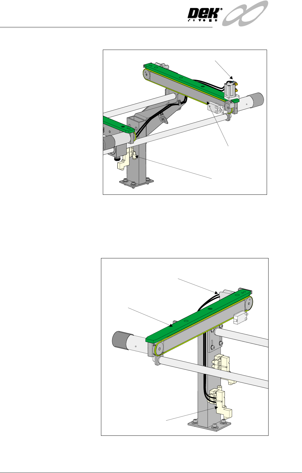 allen screws securing the board stop bracket to the conveyor rail.