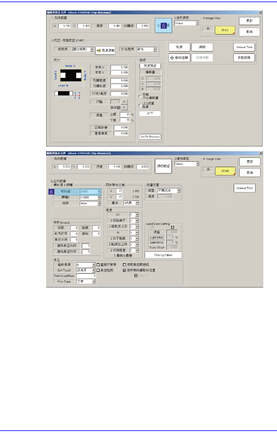 在PCB Edit菜单的Feeder重新设置错误发生部件的吸附位置(X, Y, Z)。