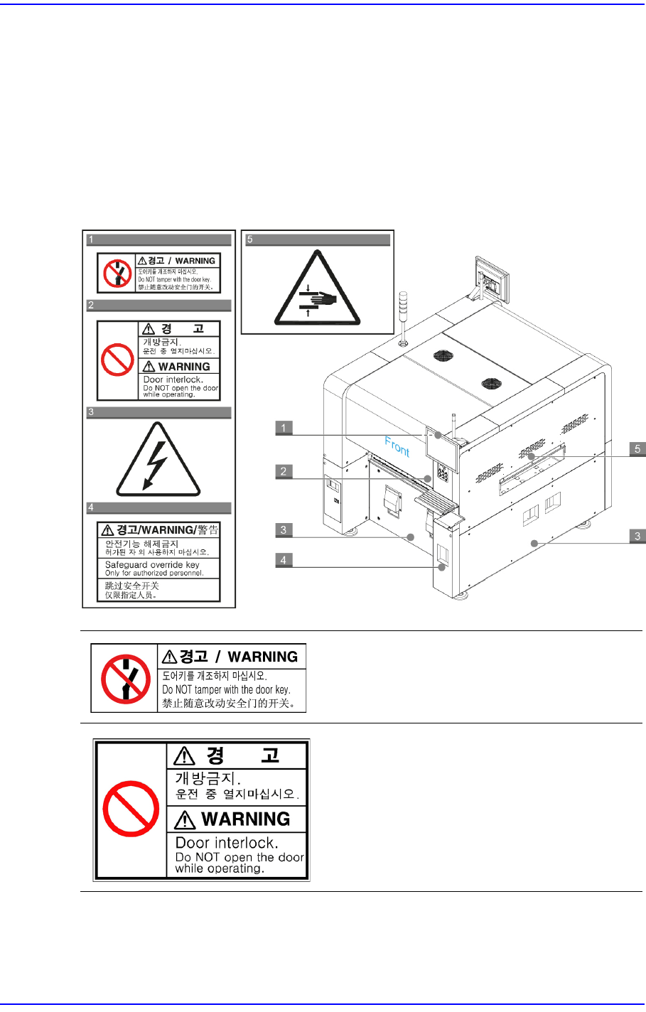 设备前面贴有以下标签