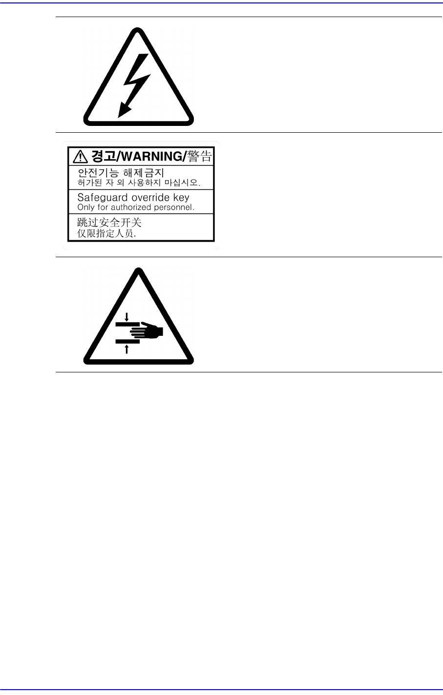 Advanced Chip Shooter DECAN S 2 Troubleshooting Guid iv 盖内侧及周围连接物部位存在 高电压要注意 电击危险。 在维护和修理设备操作时一定 要先切断主电 源。 请勿除去安全功能。 可能发生人命伤害和 深 刻的问题。 设备运行时请勿伸进手 贴有此标签处有移动体, 驱动中拆开或打 开 盖把身体的一部分伸进设备内 部时非常危 险。 维修前请停止设备。 为了维修设备及采取故障措施 请首先停止…