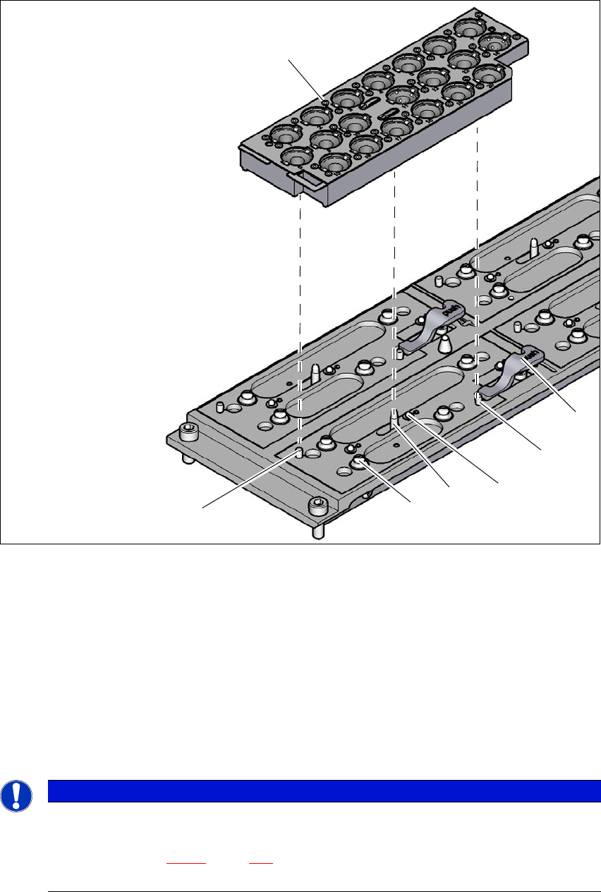 Betriebsanleitung SIPLACE TX-Serie 6 Stationserweiterungen Ab Softwareversion 713.0 Ausgabe 01/2020 6.1 Pipettenwechsler 283 Setzen Sie das Magazin auf die Druckknopfkug eln (Pos. 5 in Abb. 6.1 - 3 , Seite 282 ). Drü…