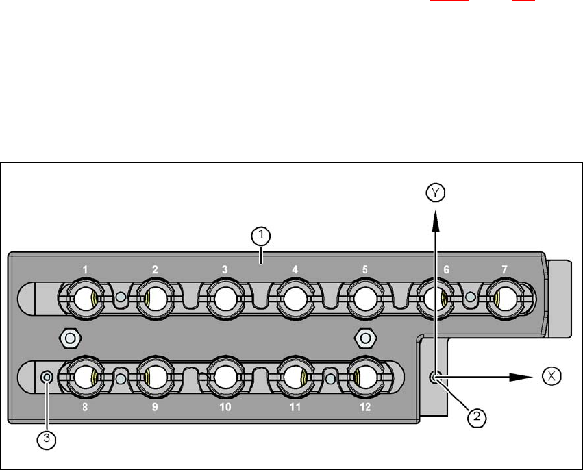 Abb. 6.1 - 4 Pipettenmagazin - Garagennummerierung, Marken zur Bestimmung der Position und der Winkellage