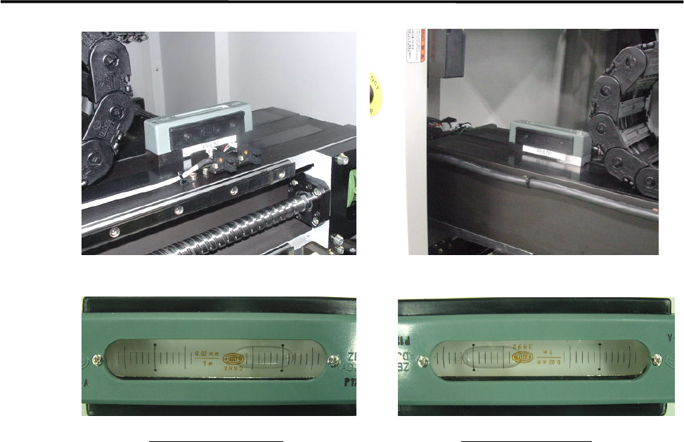 ⑦ Place a leveler on the X-axis beam and make a fine adjustment so that the difference in indicator when