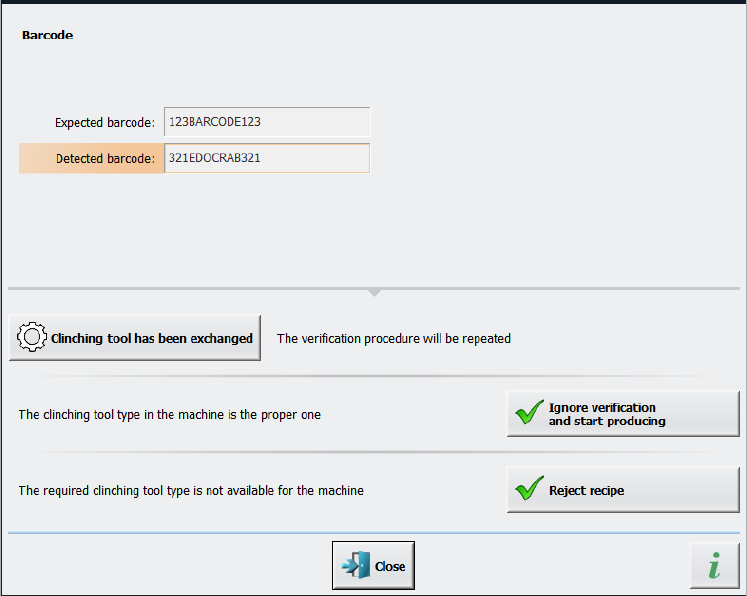 4.9 Verifizieren des Clinch-Werkzeugs durch eine Barcode-Marke