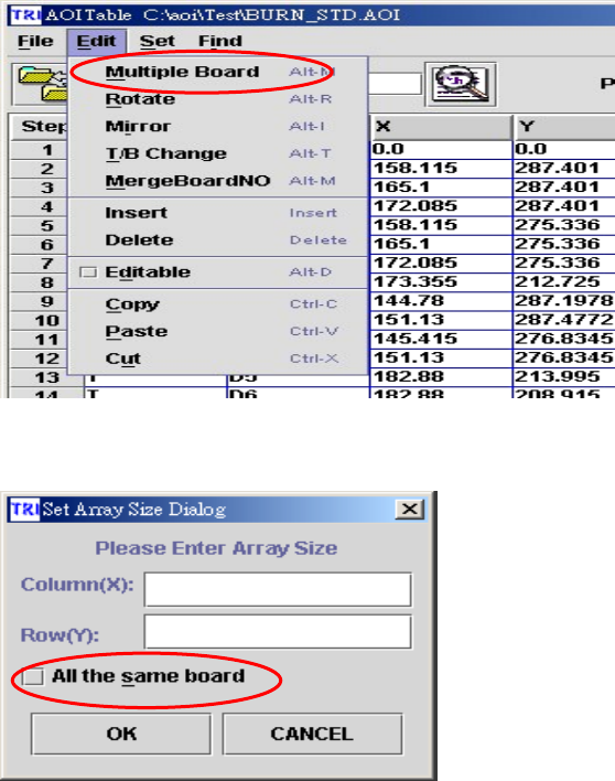 點選此處 , 開始多聯板製作 若未勾選 All the same board ,則需對每 塊聯板取得元件座標以及定義旋轉角度 若已勾選 All the same board , 則只需對每一 列頭尾聯板取得元件座標以及定義旋轉角度 點選後,可看到如下圖所示的狀態 10