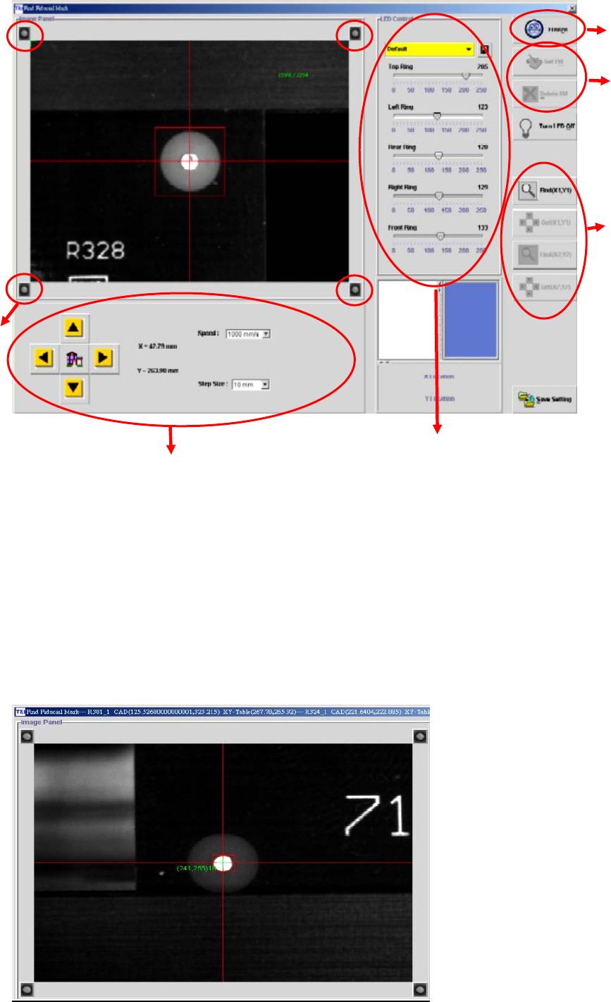 角),再以滑鼠指標點到 Fiducial Mark 中心點,點選 Freeze 按鈕可凍結視窗,調整方框的大小