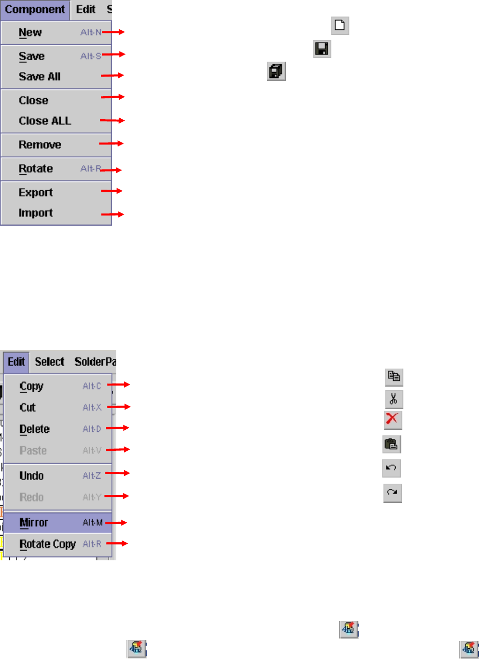 3.3 Library 細部功能介紹 新增元件種類( Ty p e ) (下方有快捷列 ) 儲存(單一 Ty p e ) (下方有快捷列 ) 全部儲存(下方有快捷 列 ) 關閉(單一 Ty p e ) 全部關閉 刪除單一 Ty p e 可對選取的檢測框 旋轉 90 、 180 、 270 度(須在繪圖模式下操作) 可對選取的檢測框 匯出 到 ComponentDB.txt 檔案裡 可將 ComponentDB.txt 檔案裡的檢 測框匯…