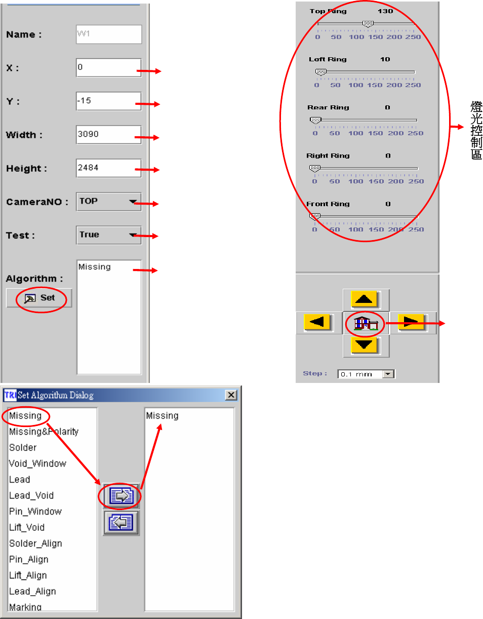 元件 X 座標 元件 Y 座標 檢測框寬度 檢測框長度 檢測框位於此 Camera 裡 Tr u e : Te s t , False:Untes t 檢測框屬性,可點選 Set 更改(如下圖所示) 點選後, X,Y Ta b l e 會移動 到此元件中心 位置 36