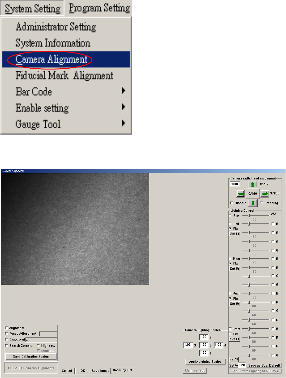 載入後,再點選 System Setting 下的 Camera Alignment,來調整五個 Camera 各自的光源。