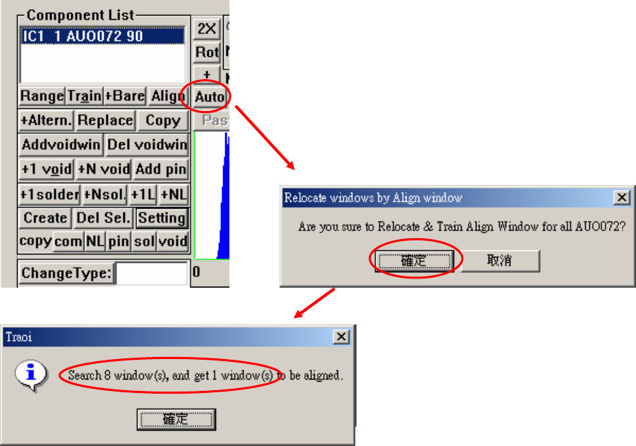 動定位,點選確定後,此時此顆 IC 同一種類所有的 Lead、Lead_Void 檢測框,會依據這個