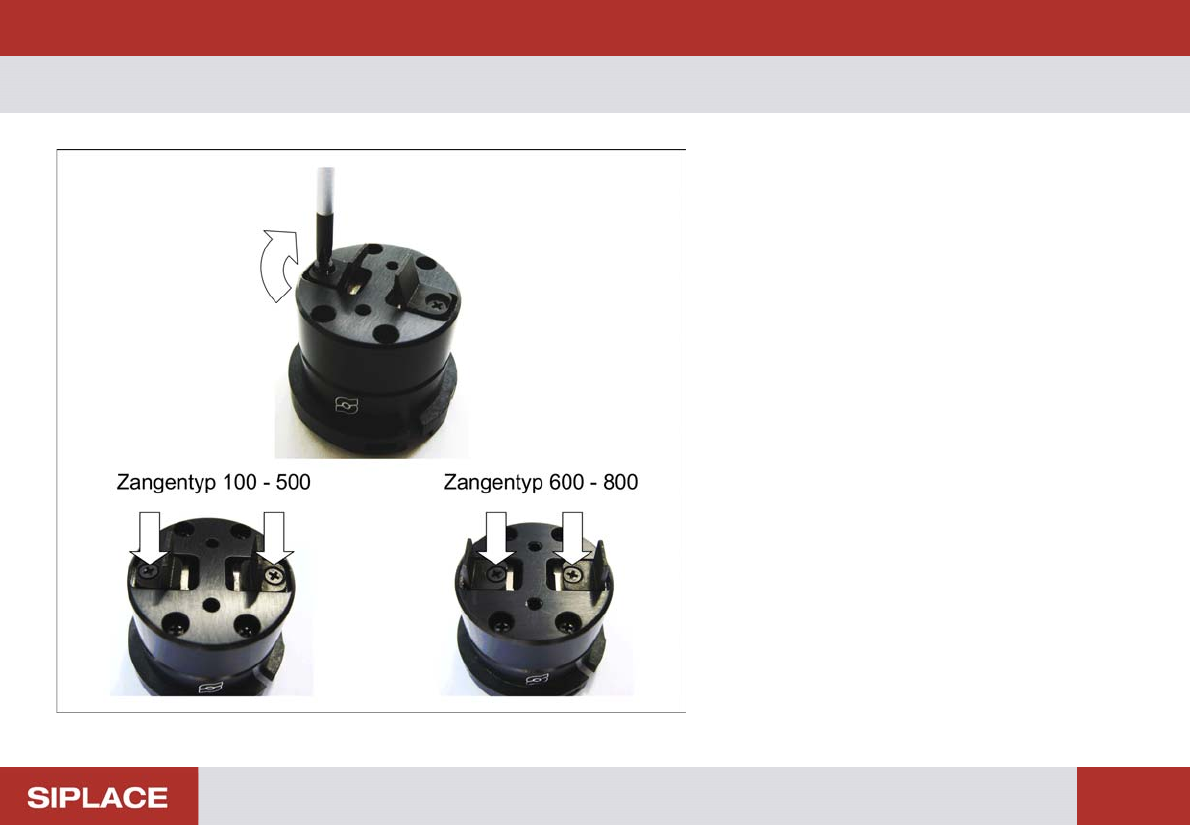 Multi-Gripper-Kit – Zangen montieren 9 – Z a n g e n m o n t ie r e n ► Ziehen Sie das Zange npaar a uf dem *UHLIHU Grundkörpe r fest. Abhä nging vom Zangentyp, müssen die zwei Schrauben außen (1 00 – 500) oder innen (…