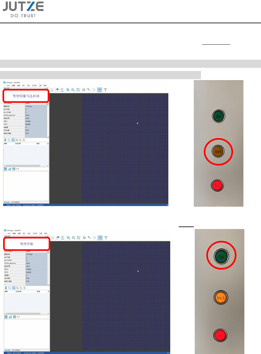 3.2.2 启动伺服后,设备信息窗口显示“等待开始”,此时按下 Start 按钮。