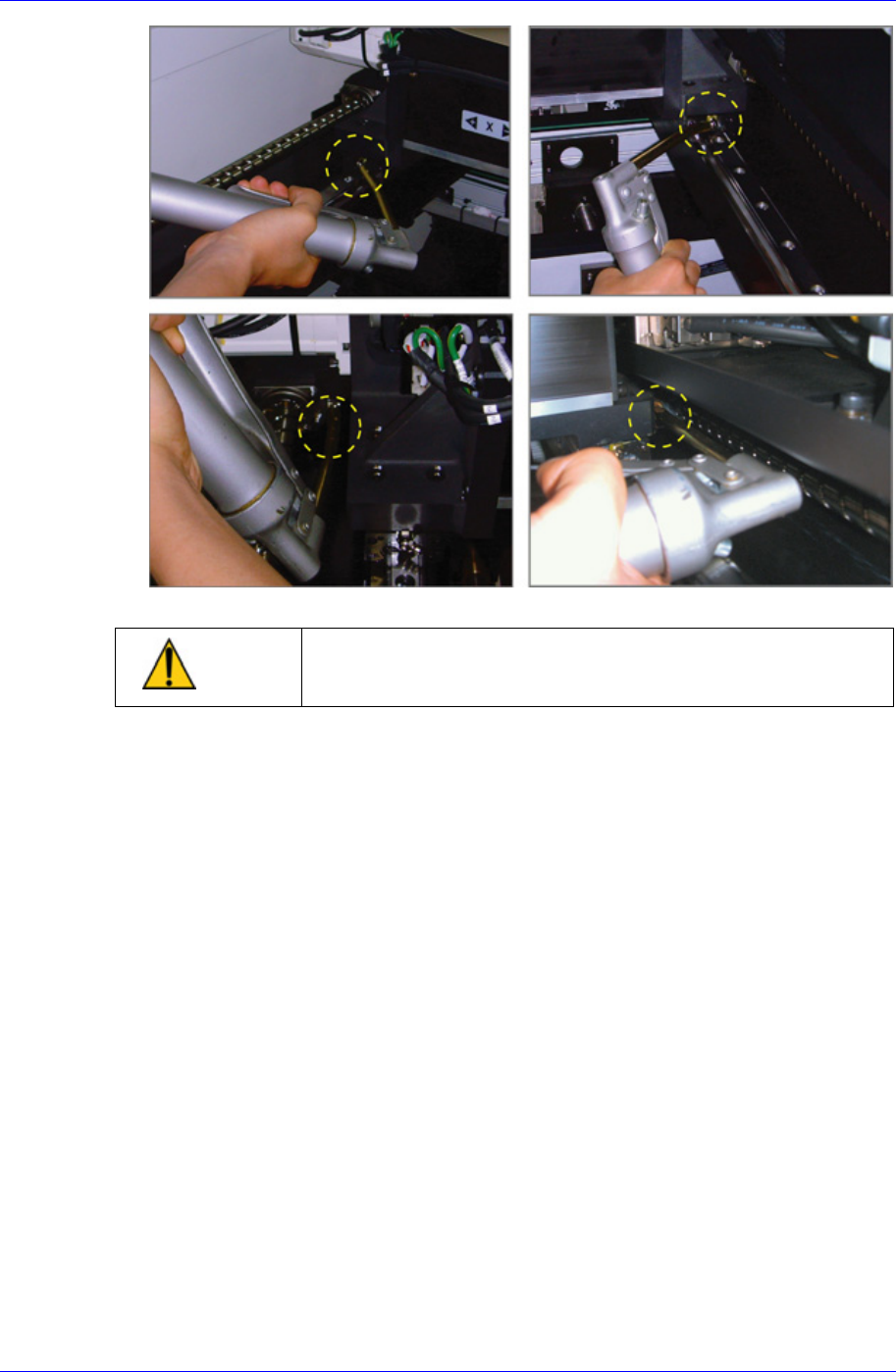 操作示教盒X轴移动到Y轴LM导向块的注油嘴(B)(C)位于适当的注油地点为止