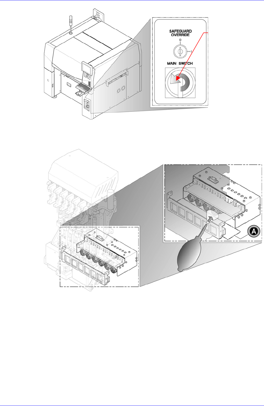 定期检验 3-9 3.1.3. Cover Cooling Fan Filter 检点 检查附着于设备左侧盖上的冷却风扇过滤器是否 被污染。因灰尘等吸入力下降,导 致设备内部温度上升,这将成为 电子设备故障的原因。 措施 分离设备左侧盖上的过滤器盖, 摘出 Filter 使用真空清扫器进行清扫 。 Cooling Fan Filter Cove r Cooling Fan Filte r 设备左侧盖
