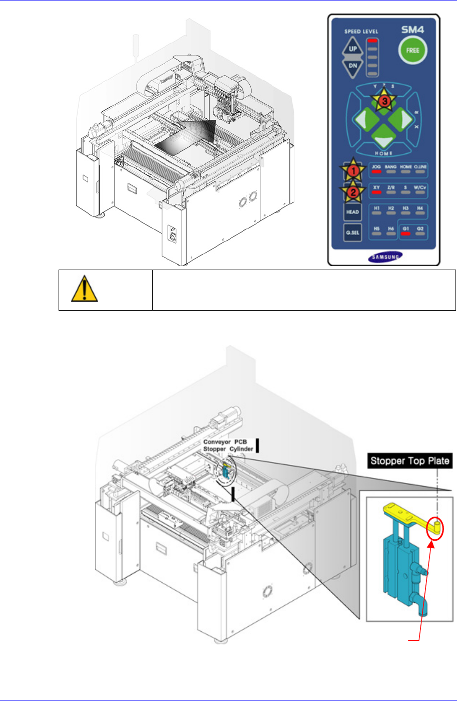 Samsung Component Placer SM421 Maintenance Refer ence Stopper T op Plate 和 Stop per Post 的 1 个螺丝 (M3*10L) 后,更换新的部 件。 按照卸载的逆方向组装。 在气缸的动作上有异常现象时,请 与本公司的 C/S 中心联系,并 得到销后服务 。 警 告 I/O Test 时如果将身体的一部分伸到设备中会发生严重人 员 受伤。 I/O …