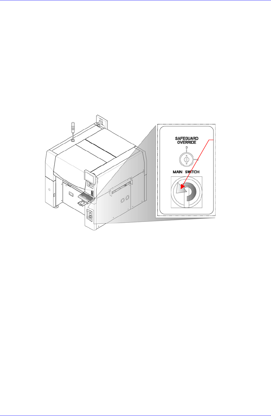 关闭(OFF)主电源开关(Main Switch)后,检查设备内的电源是否正常断路。