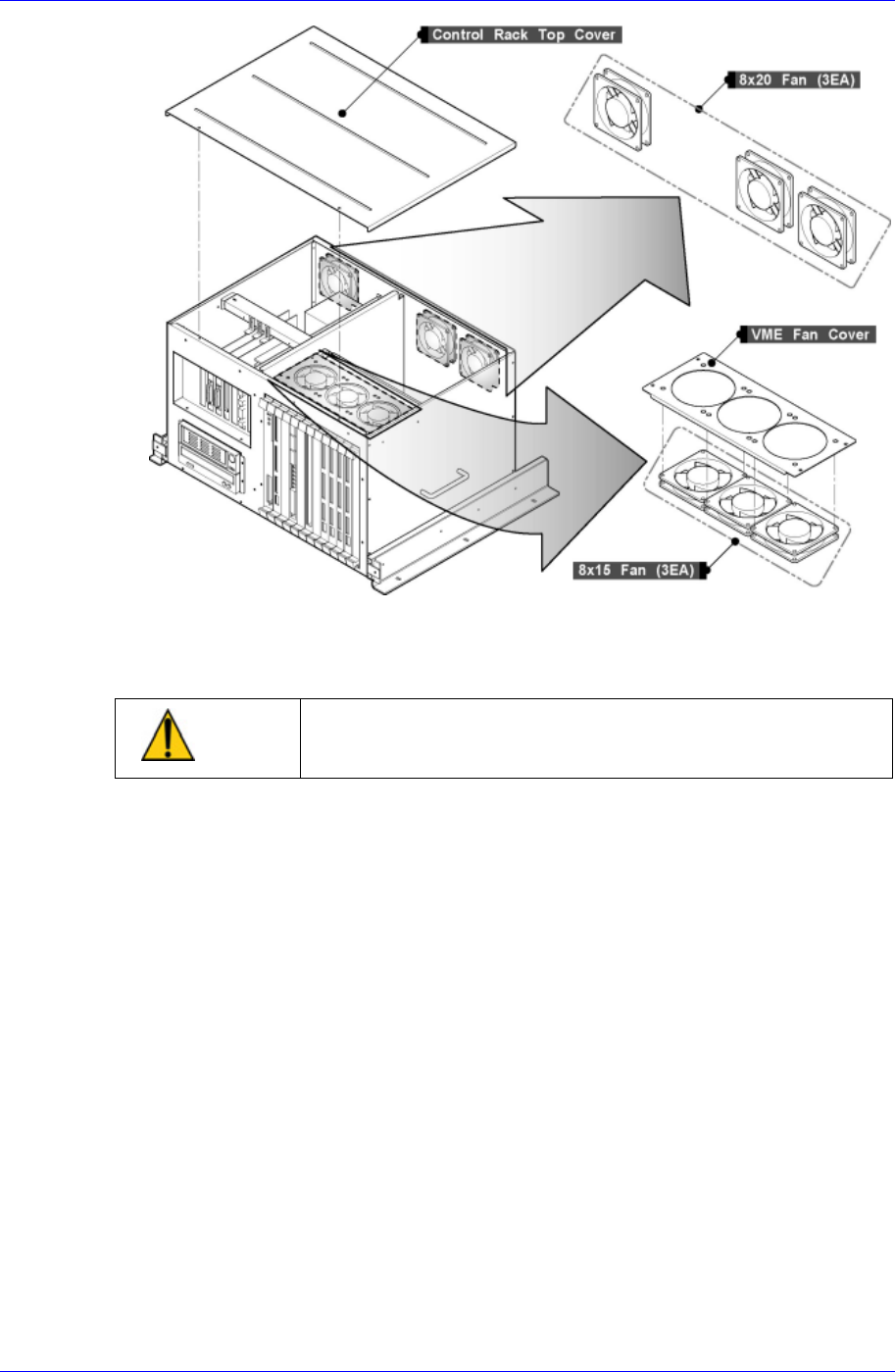 检查Control Rack内部的6个冷却风扇的动作状态,如果冷却风扇的噪音状态良
