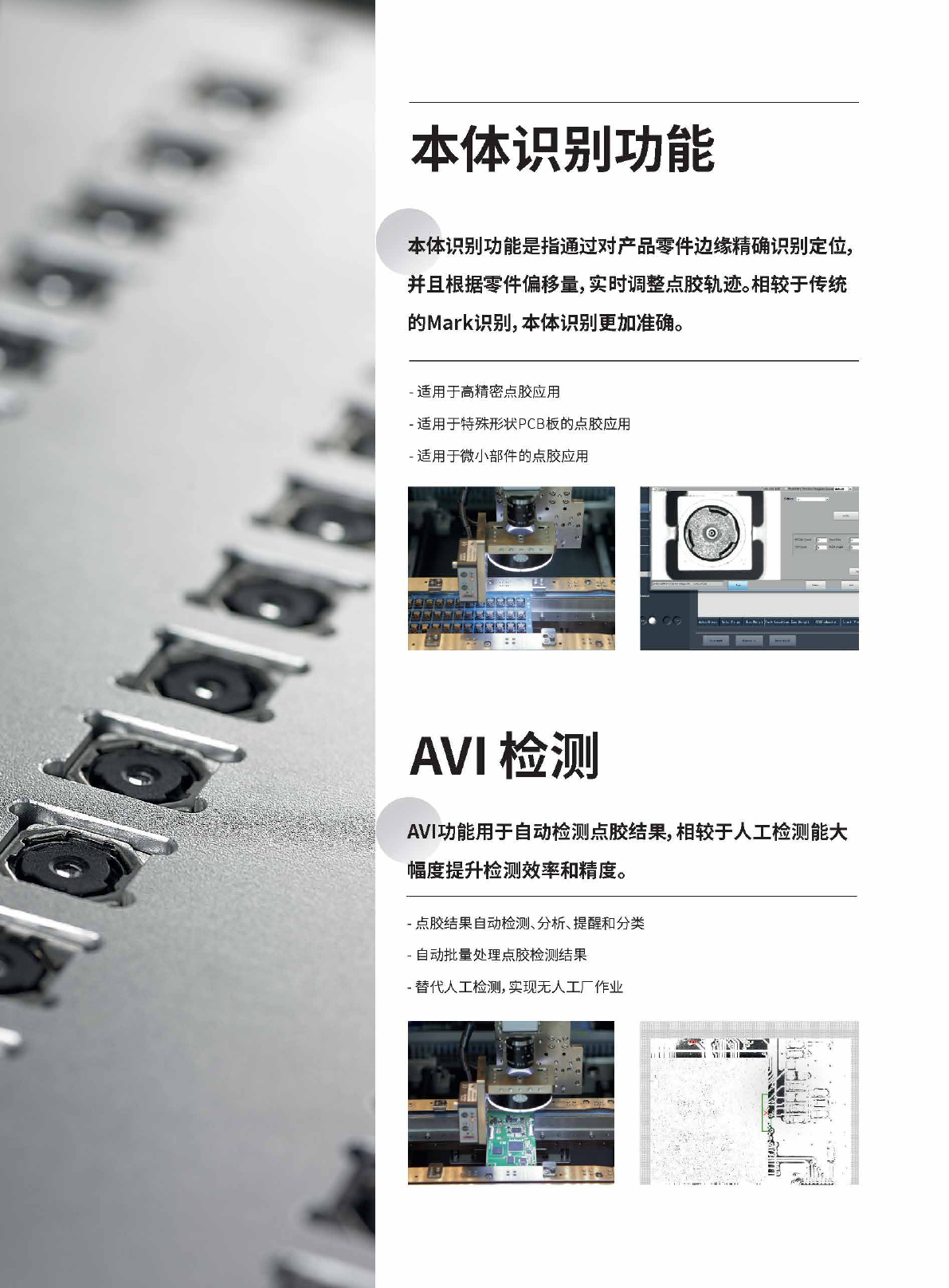 Au 系列全自动点胶设备 常用配置 双轨传送 - 减少待料时间 , 提升生产效率 在不同轨道可实现不同产品点胶作业 轨道加热模块 接触式 / 非接触式加热模块 , 改善胶水流动性 , 提升生产效率 提供了所有潜在处理材料的选项以增加点胶高效性 双阀配置 同步双阀 : 双阀同时工作 , 节省工作时间 , 提高生产效率 异步双阀 : 双阀不同时工作 , 同一台机内完成两种点胶工艺 旋转倾斜点胶 - 能实现 ± 30 度内倾斜点胶 可应用于 …