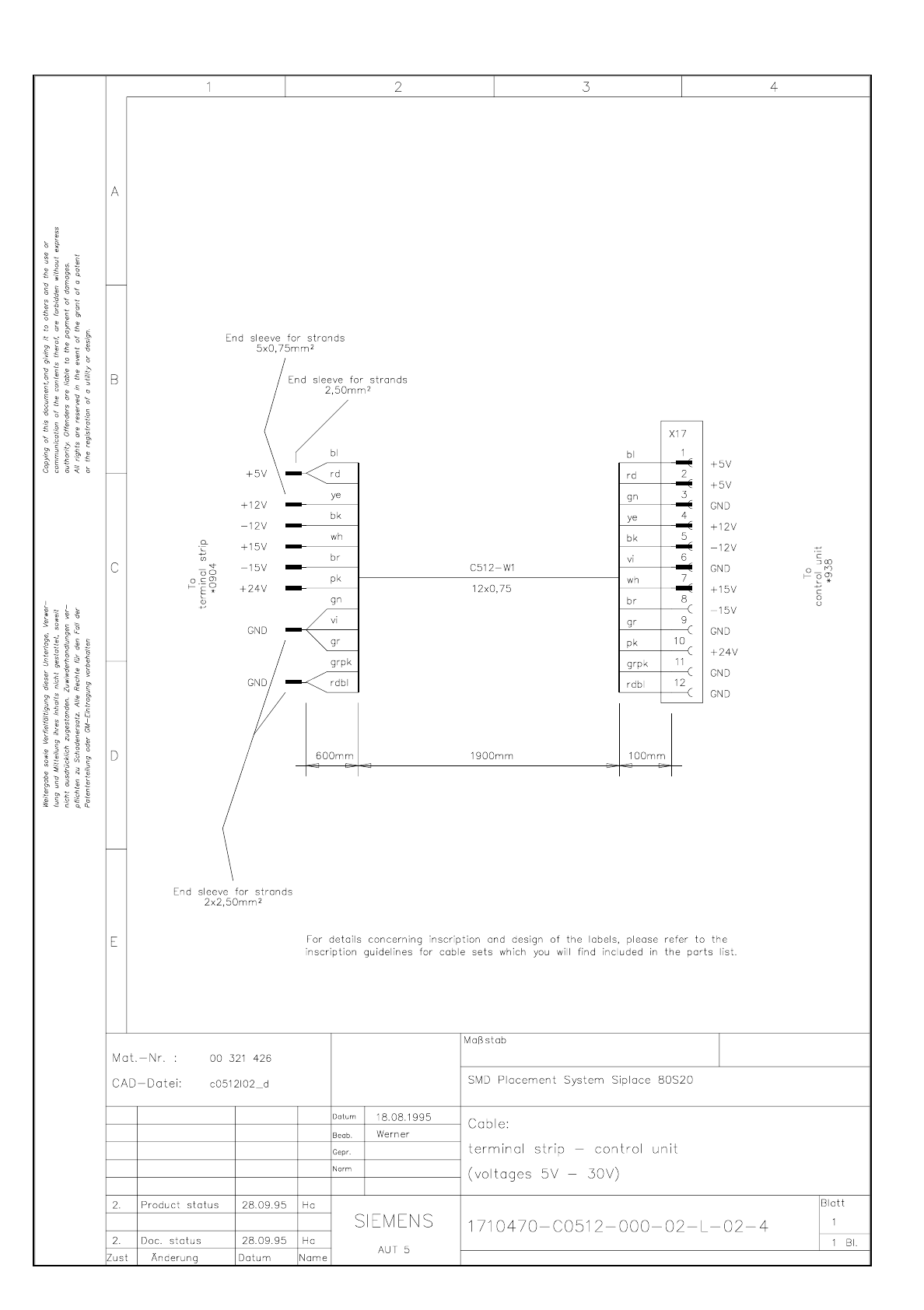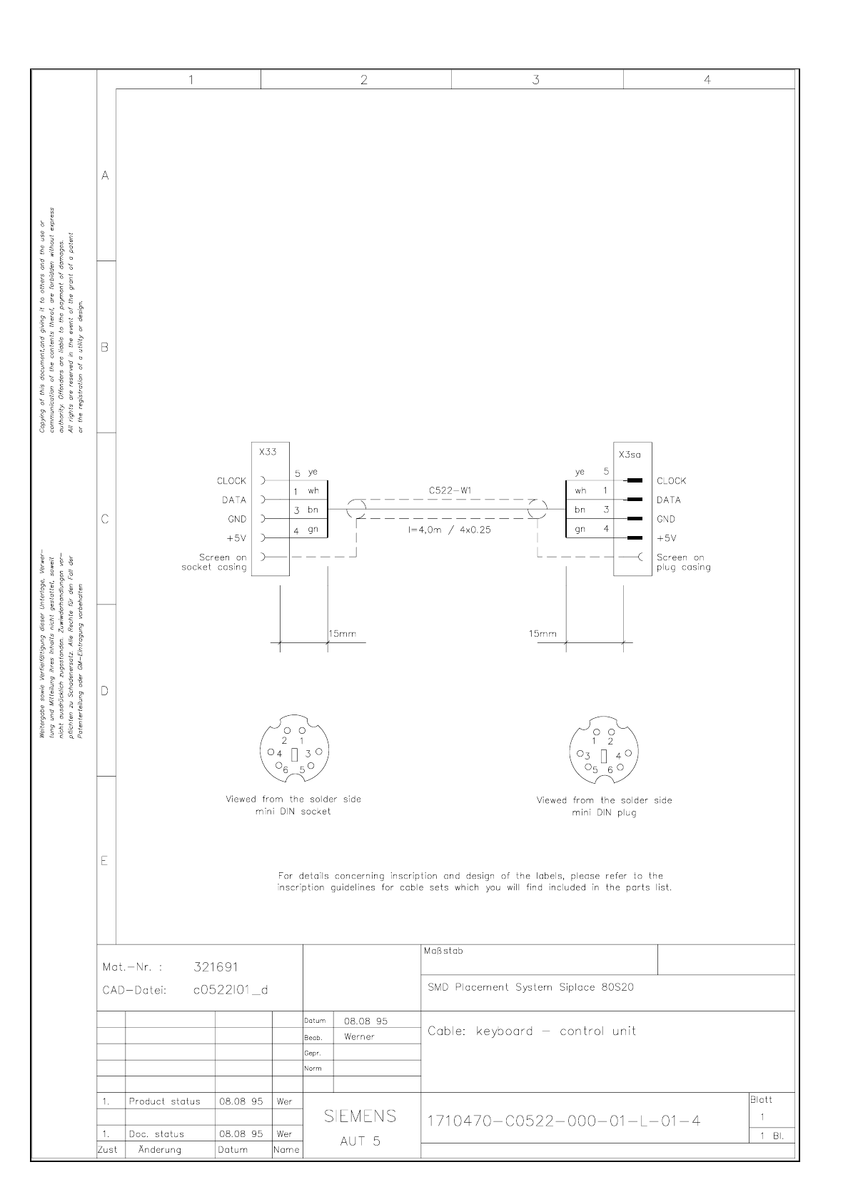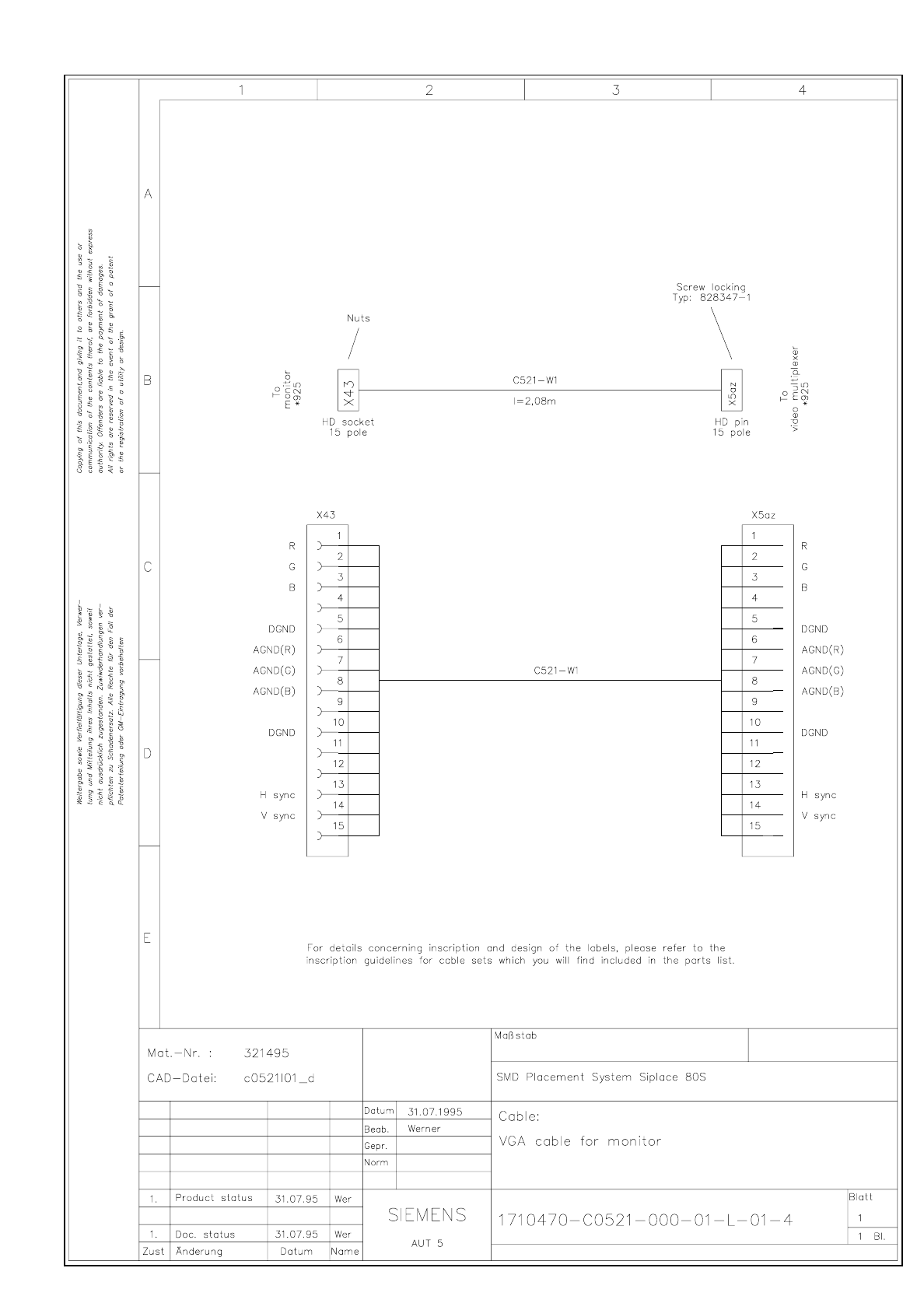 SIPLACE 80S-20 Cable VGA ca ble for mo nitor 3.5 - 63 Cable VGA cable for mo nitor C0521L 01.dwg 1710470- C0521- 000-0 1-L-0 1-4 Cable VG A cable fo r monit or