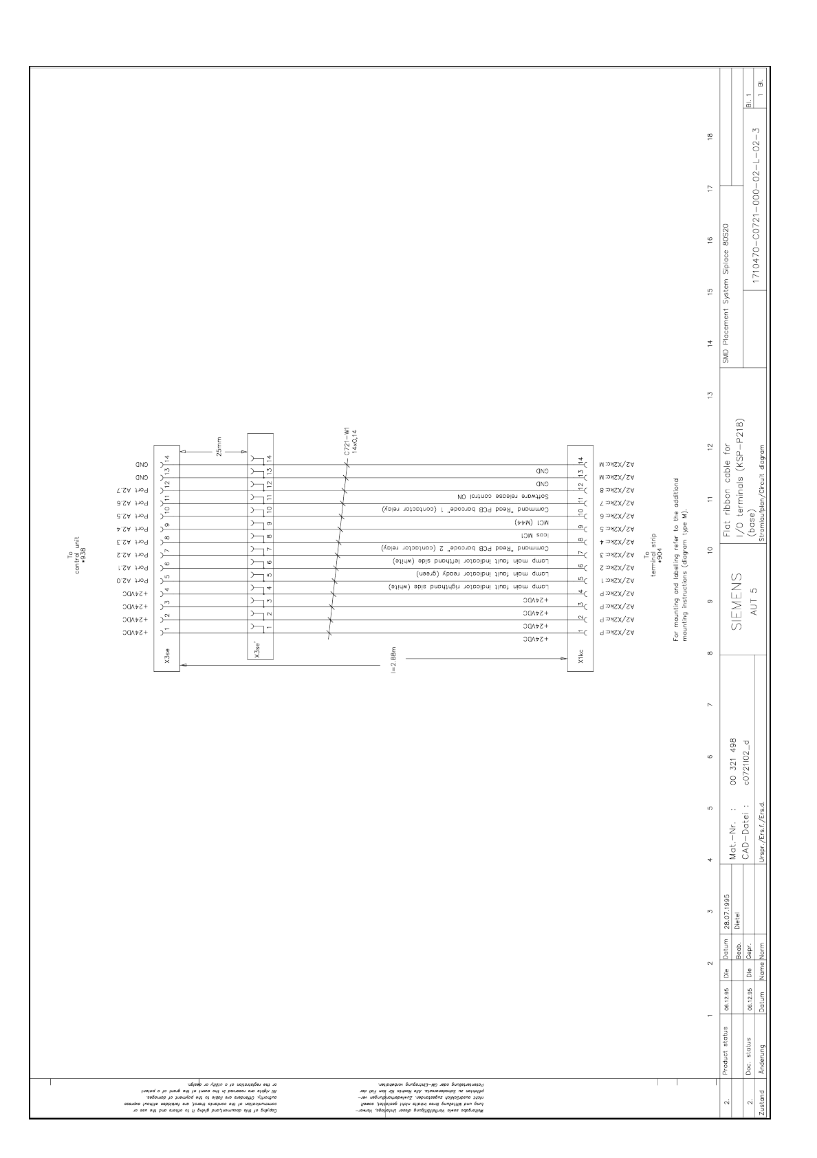 3.5 - 82 Flat ribbon cable for I/O terminals (KSP-P218) (base) (Sh. 1 of 2) SIPLACE 80S-20